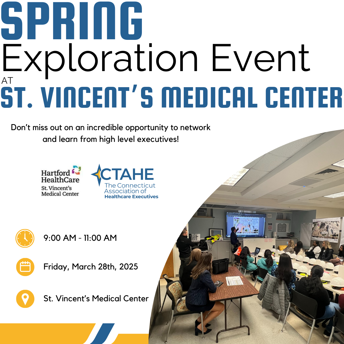 Join us for the Spring Healthcare Exploration Event, designed specifically for healthcare administration students. This event, hosted by the Connecticut Association of Healthcare Executives (CTAHE) at St. Vincent’s, offers a unique opportunity to explore the dynamic field of healthcare administration.